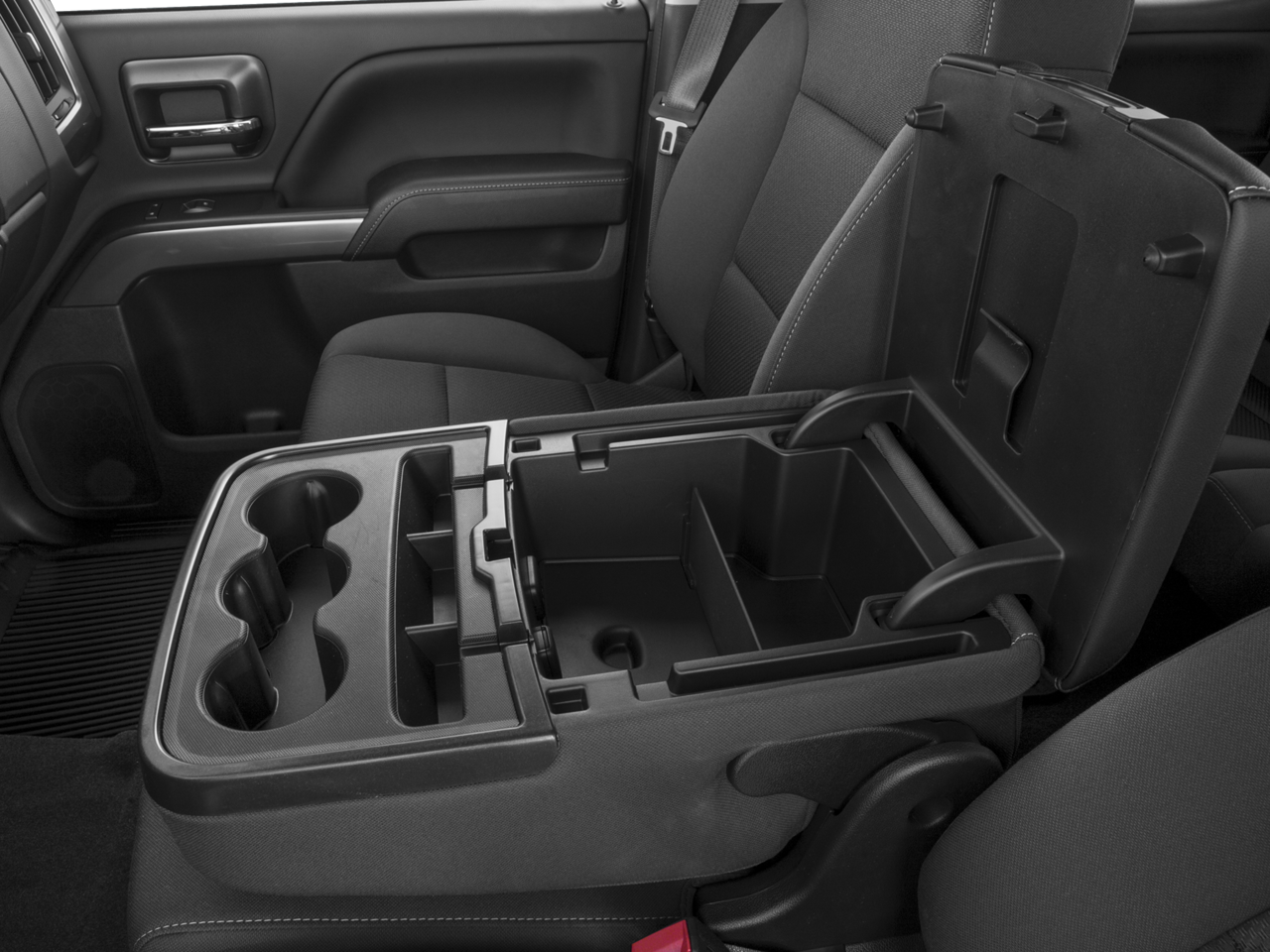 • Seats, front 40/20/40 split-bench, 3-passenger, available in cloth or leather includes driver and front passenger recline with outboard head restraints and center fold-down armrest with storage. Also includes manually adjustable driver lumbar, lockable storage compartment in seat cushion, and storage pockets. (Leather with (KA1) heated seat cushions and seat backs is an available extra charge option with (H1Y) Jet Black leather appointed interior trim and requires (PCM) LT Convenience Package, (PDA) Texas Edition or (PDU) All Star Edition. Includes (AG1) driver 10-way power seat-adjuster with (PCM) LT Convenience Package, (PDA) Texas Edition or (PDU) All Star Edition.)