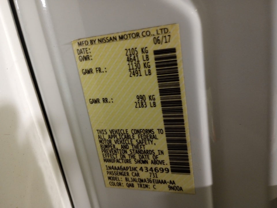 VIN: 1N4AA6AP1HC434699