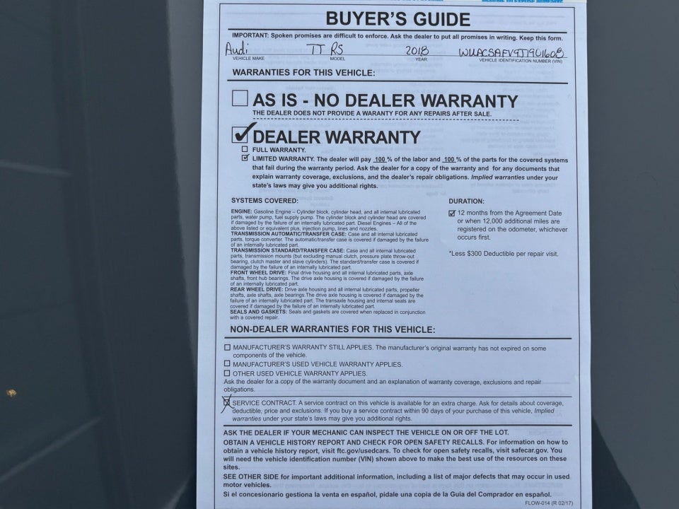 - Vehicle Name: Audi TT RS