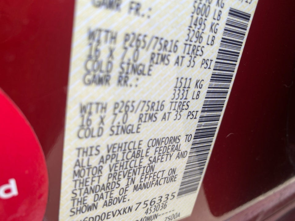 • Rear Tire Size: P265/75TR16
