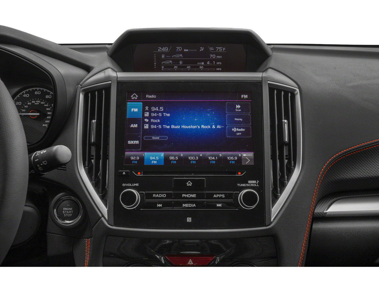 - Radio: Subaru Starlink 6.5" Multimedia Plus System -inc: AM/FM stereo HD Radio w/single-disc CD player w/MP3/WMA/CRR/RW file capability, multi-touch gesture high resolution display, 6.5" LCD screen, voice activated controls, Bluetooth® audio streaming connectivity, hands-free phone connectivity and hands-free SMS text messaging connectivity, iPod control capability, rear-vision camera display, SiriusXM All Access radio and Travel Link (subscription required), smartphone integration: AHA, Android Auto, CarPlay and Pandora, Starlink cloud applications: refer to subaru.com for app availability, dual USB input ports, 3.5mm auxiliary input jack, 6 speakers and body color roof mounted antenna