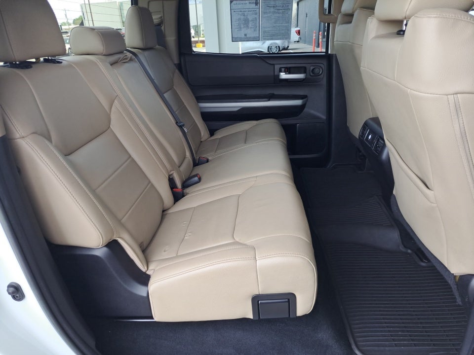 The Tundra's spacious interior offers premium comfort and convenience features including a leather-wrapped steering wheel power-adjustable driver's seat and a premium audio system with SiriusXM radio. The SR5 Leather Package takes the Tundra's luxury to the next level adding features like a center console with cup holders a floor-mounted shift lever and an anti-theft alarm system.