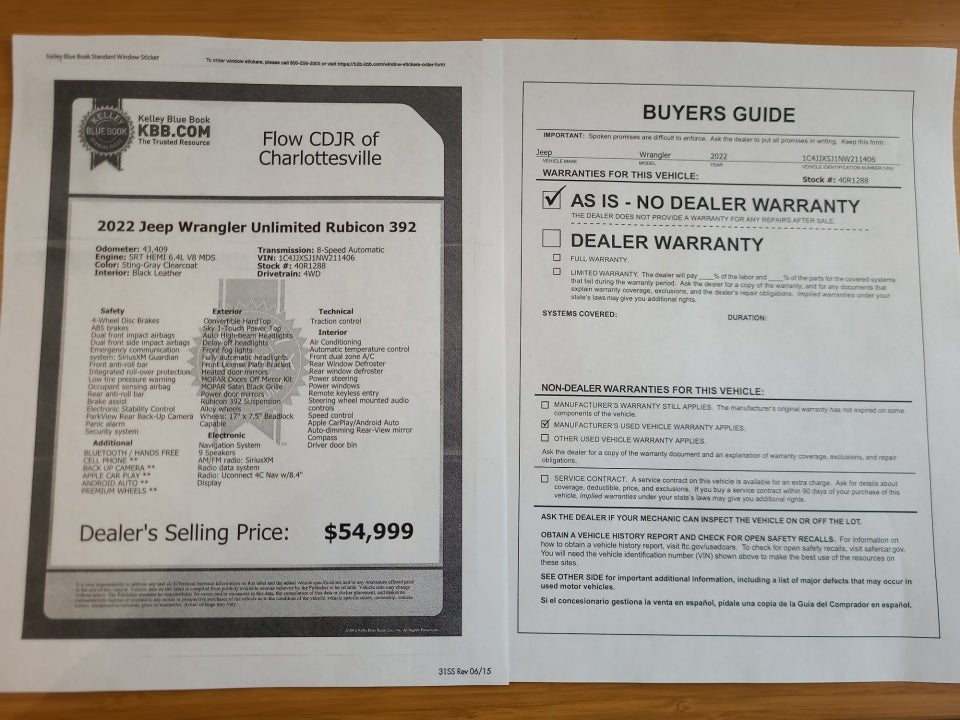 - Vehicle Name: Jeep Wrangler