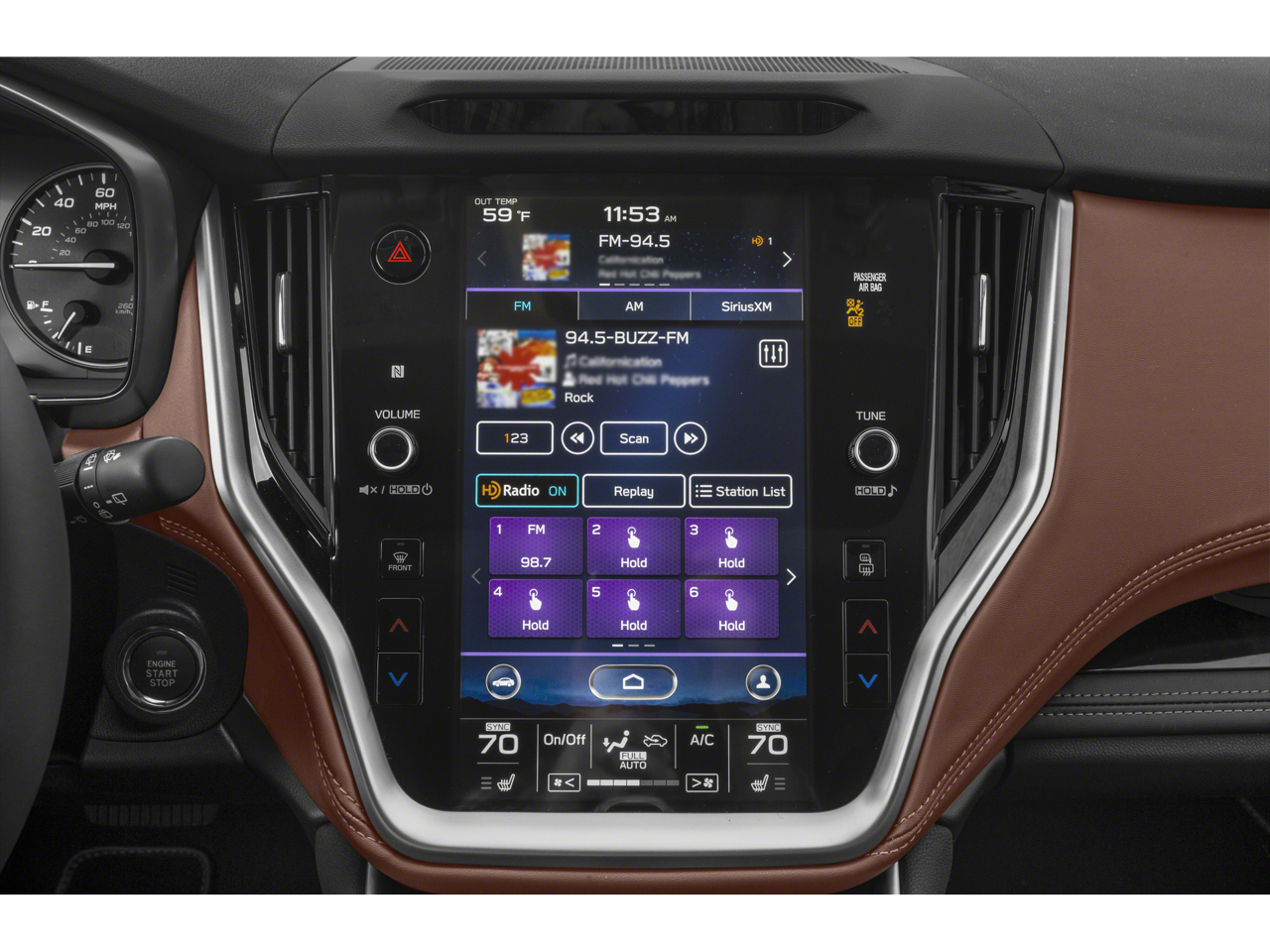 - Radio: Subaru STARLINK 11.6" Multimedia Nav System -inc: AM/FM stereo, HD Radio, multi-touch gesture high resolution display screen, voice activated controls and navigation, Bluetooth® audio streaming and hands-free phone connectivity w/SMS text messaging (refer to subaru.com for cell phone compatibility), Near Field Communication (NFC), iPod control capability, SiriusXM All Access radio (4 months free trial/subscription required after), SiriusXM Traffic (3 years free trial/subscription required after), SiriusXM Travel Link (3 years free trial/subscription required after), smartphone integration: Android Auto, Apple CarPlay and STARLINK cloud applications (refer to subaru.com for app availability), USB and Over The Air (OTA) audio system update, USB/Map Over The Air (MOTA) TomTom navigation system update (3 years free map updates), 576 watt harman/kardon surround sound system w/12 speakers, 3.5mm auxiliary input jack and dual USB input ports