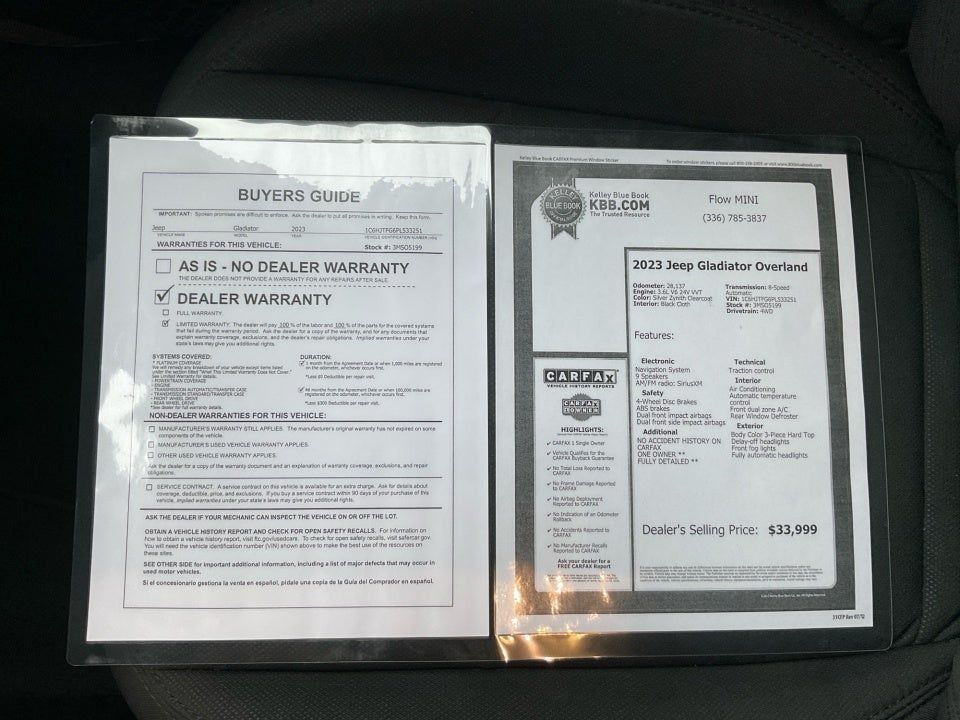 FLOW CERTIFIED! 4YR/100 000 MILE WARRANTY 3 day money back guarantee and a free maintenance package on this 2023 Jeep Gladiator. Odometer is 14584 miles below market average!
