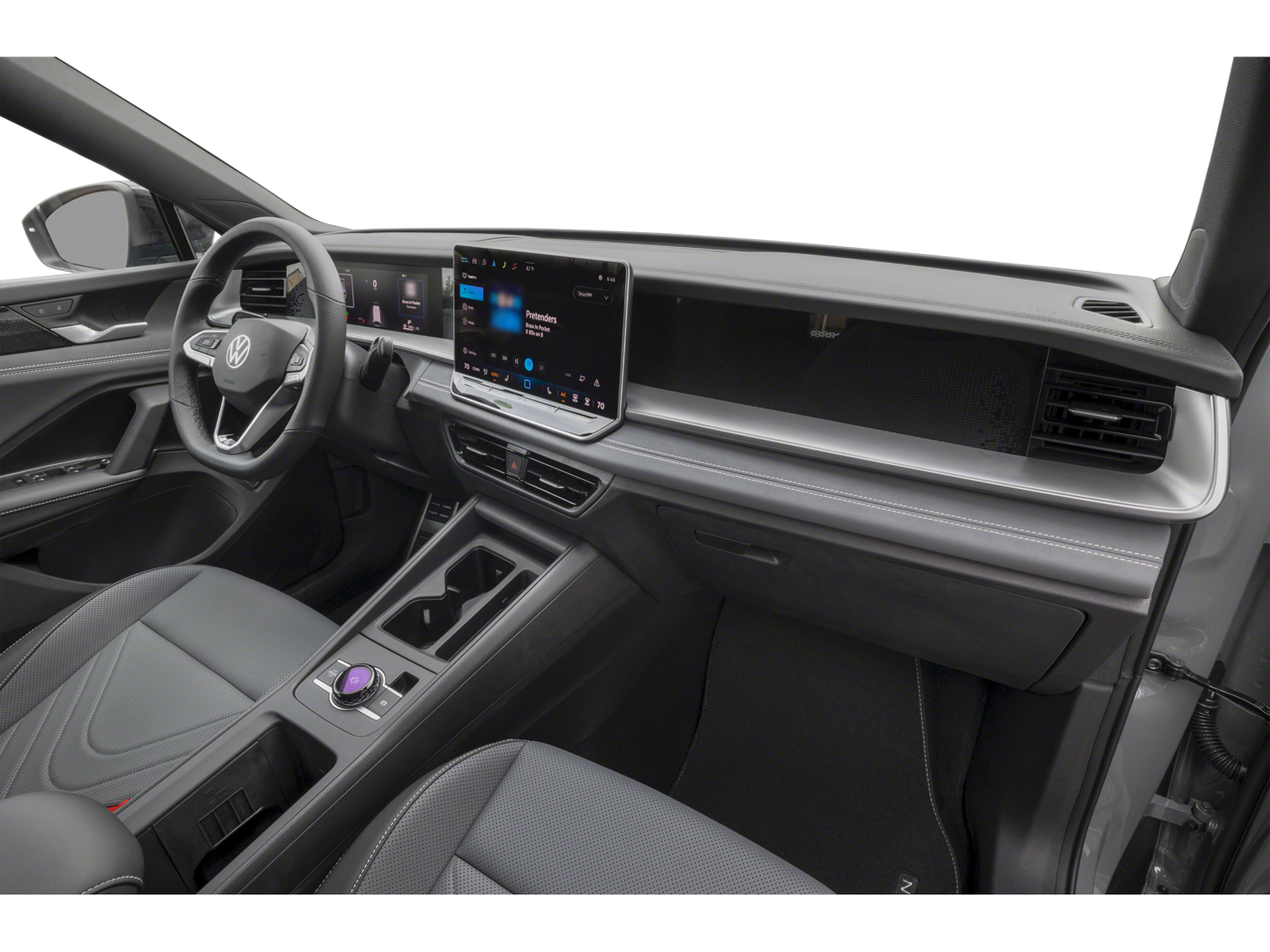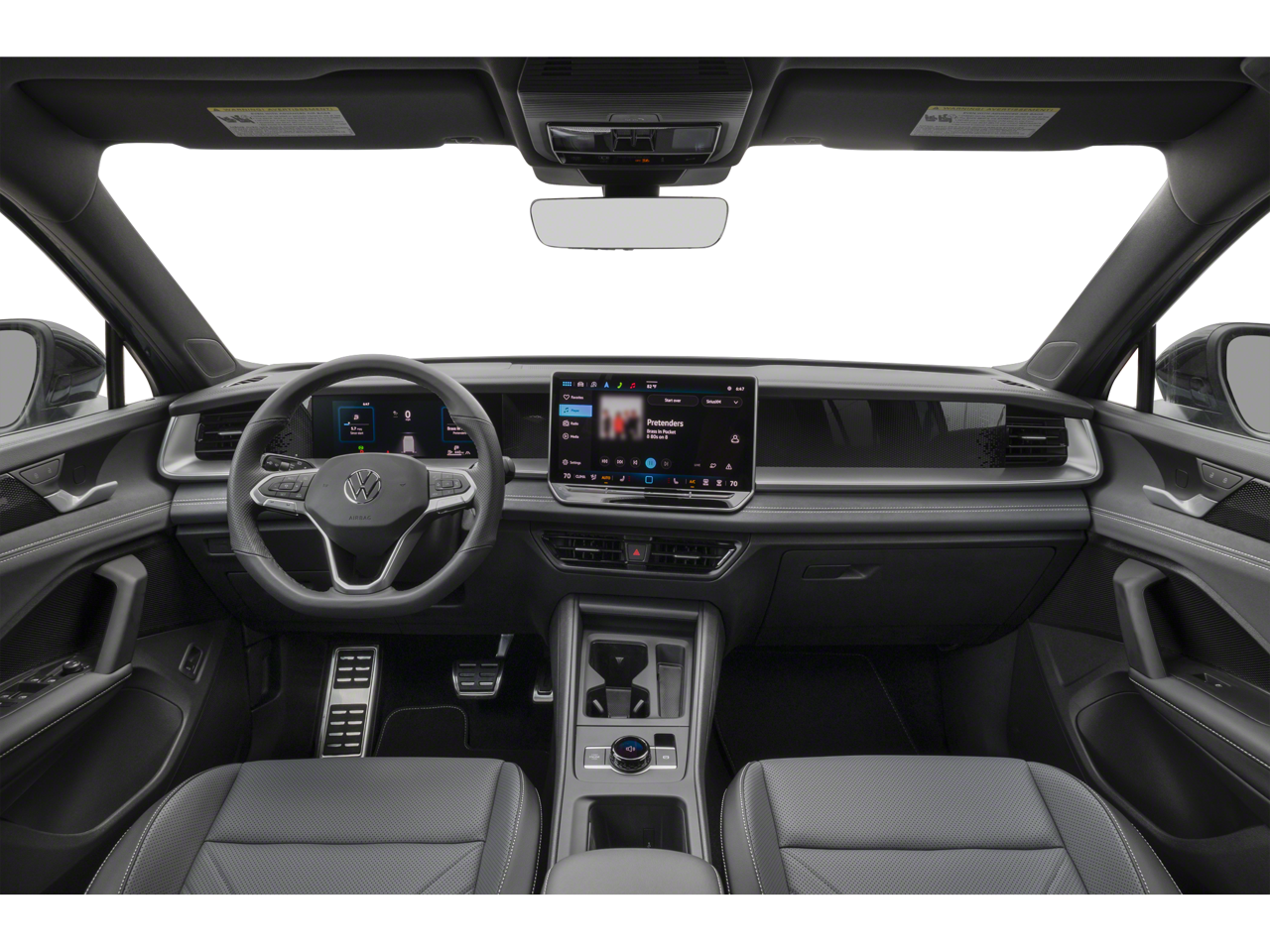 - Radio: MIB4 Composition Media Touchscreen AM/FM -inc: WMA/MP3/FLAC player w/USB, 12.9" touchscreen multi-function center display w/backlit sliders, voice control, 6 speakers + center speaker (7 speakers total) sound system, capability for in-vehicle 4G LTE enabled Wi-Fi (cellular data plan required; includes limited trial), capability for VW Car-Net services (capabilities for services vary; requires enrollment or subscription), Bluetooth® connectivity (for compatible devices), SiriusXM w/360L (w/3-month free trial subscription; 360L services require acceptance of Car-Net terms), App-Connect smartphone integration (w/Apple CarPlay, Android Auto and MirrorLink) via USB, wireless App-Connect smartphone integration (for compatible devices) w/multi-phone pairing capability, 45W fast charging (for compatible mobile phones and accessories) via USB in both rows and Qi wireless inductive charger, cooled, up to 15W (for compatible mobile phones and accessories)