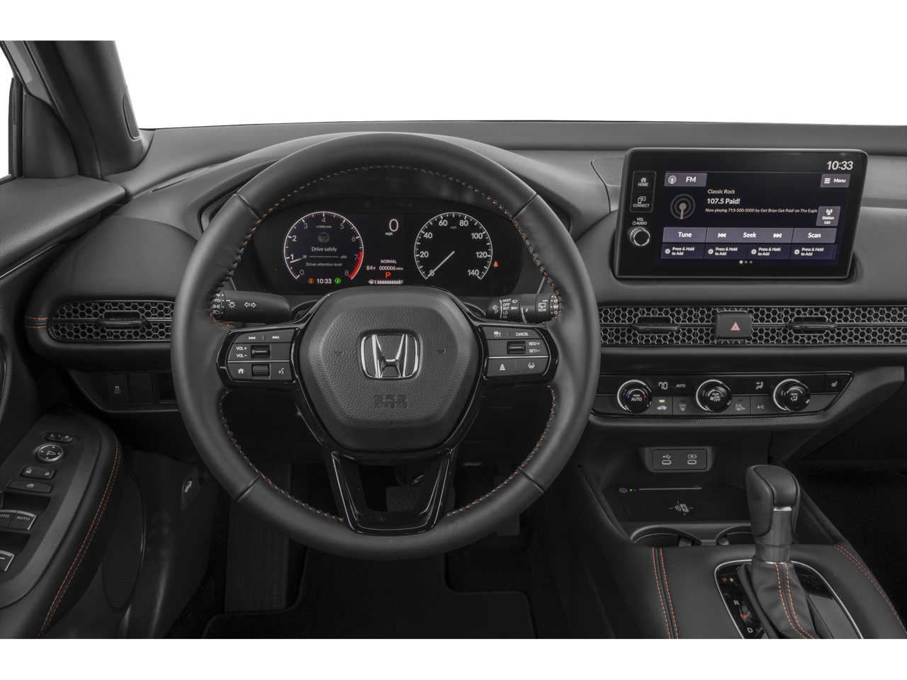 - Radio: 180-Watt Audio System w/6 Speakers -inc: 9-inch color touchscreen, wireless Apple CarPlay and Android Auto compatibility, Bluetooth® HandsFreeLink and streaming audio, 3.0A USB-C data/charging port in front console, Qi wireless phone charger, HondaLink and Speed-Sensitive Volume Compensation (SVC)